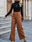 These stylish high-waisted trousers with wide legs are a real eye-catcher. The soft knit fabric with a suede look gives a luxurious appearance, while the button details at the front add a chic touch. Pair with a turtleneck or blouse for a powerful, feminine look – perfect for the office, dinner, or a city stroll.